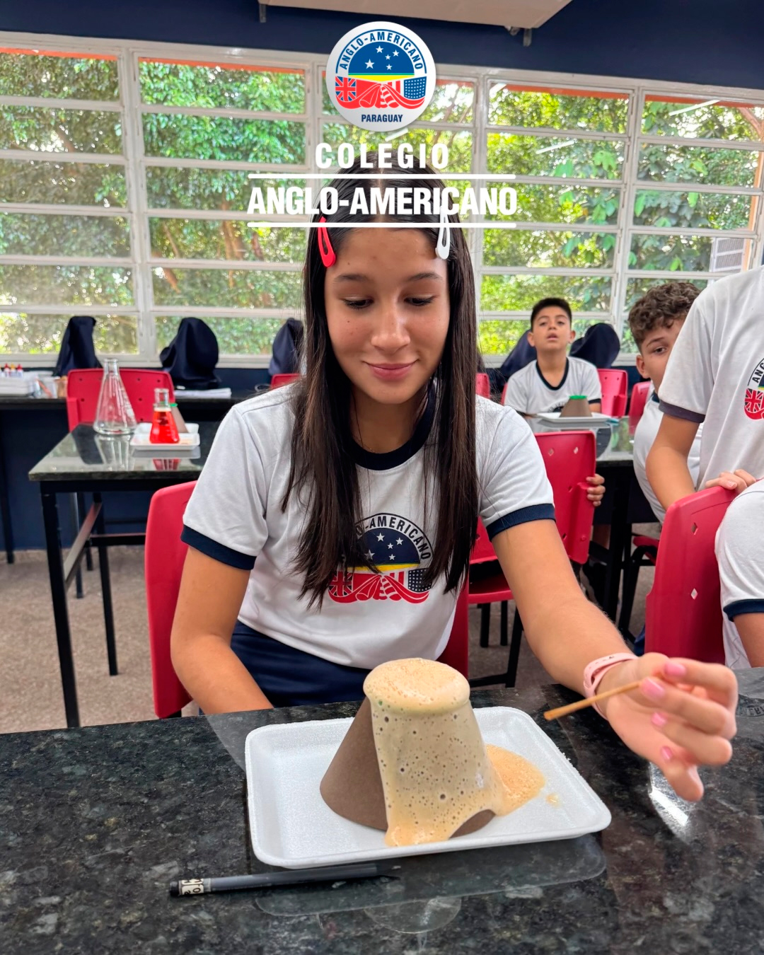 Como actividad práctica, realizaron el experimento del volcán, una experiencia que les permitió observar, participar y relacionar lo aprendido en clase con una propuesta dinámica y significativa.